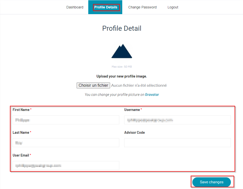 To change your personal information, select “Profile Details”. Here you can edit your name, user name and email address. Once done, click on “Save changes”.