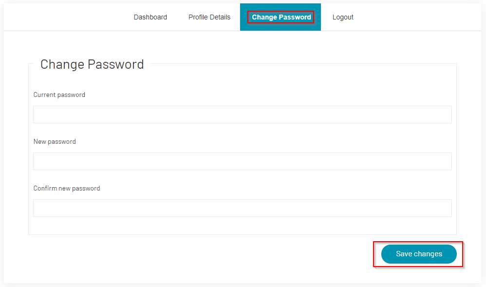 To modify your password, select “Change Password”. Enter your current and new passwords, then click on “Save changes”.