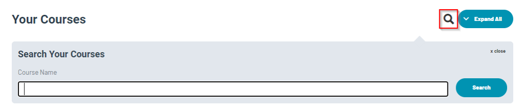 Click on the magnifying glass to search by keywords and see courses related to the keywords.