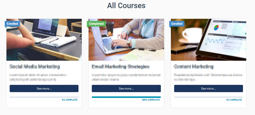 Once a course is completed, click on “Mark Complete” to go to the next one. Marking a course as completed ensures the completion is logged correctly in your account.
